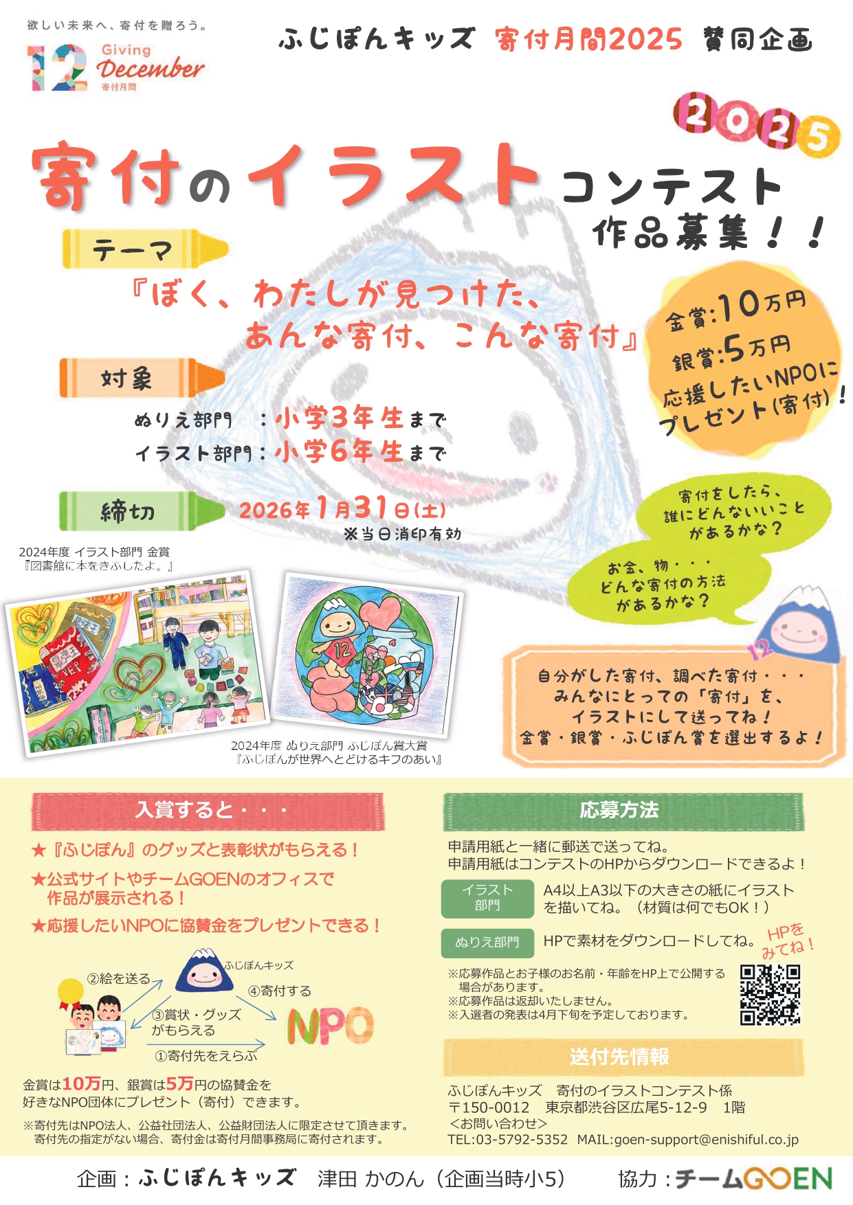 イラスト部門: 【金賞】ふじぽんグッズ一式、賞状、協賛金1…締切20261/31