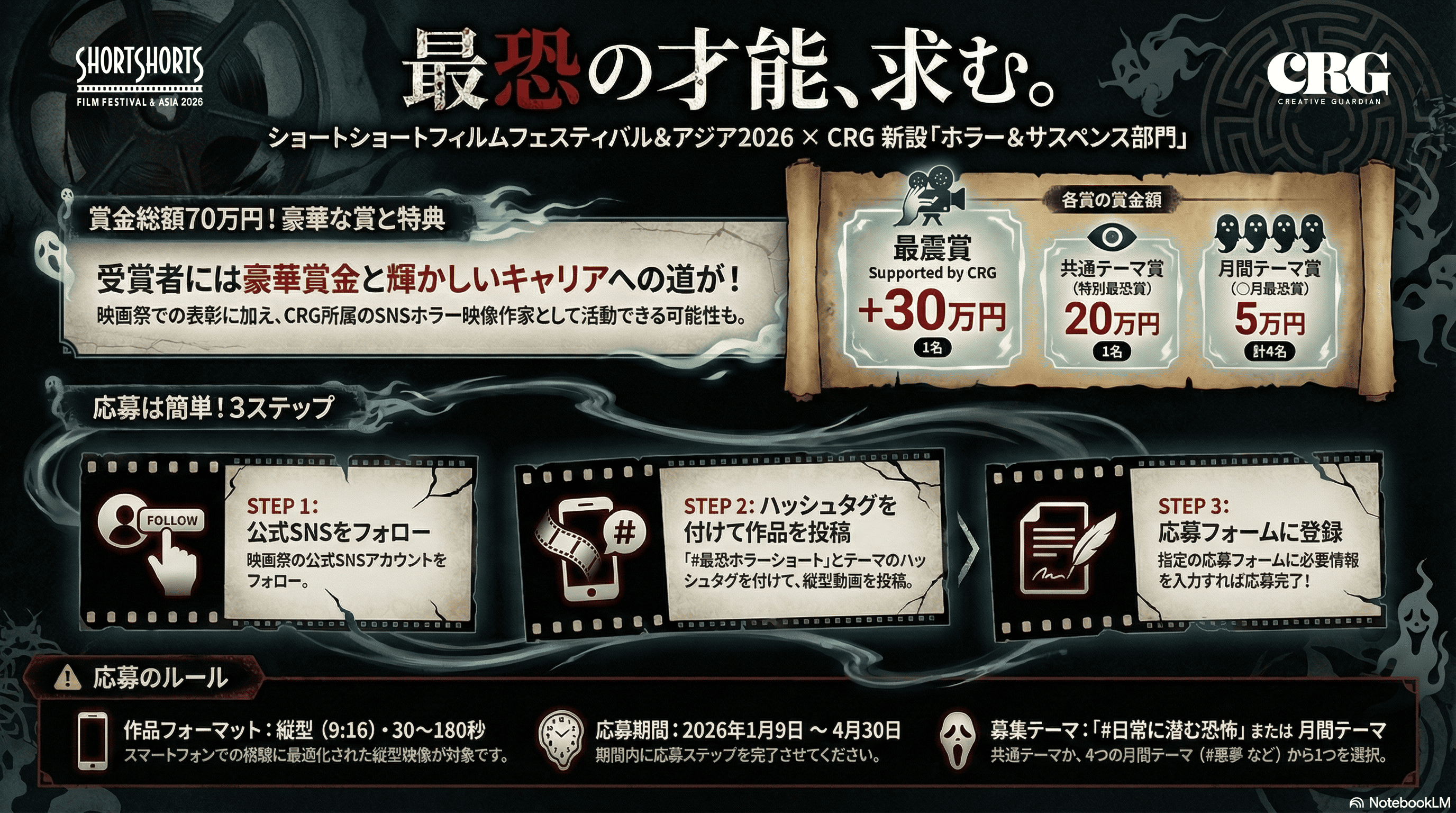 バズより、震え。 SSFF & ASIA 2026 × CRG 縦型ホラー&サスペンス部門新設 3分以内で“最恐”を証明せよ【賞金最大70万円】