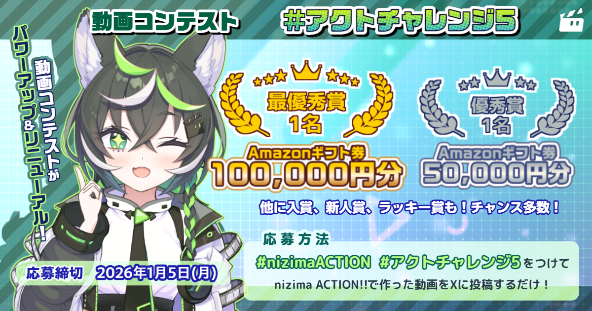 最優秀賞(1名):10万円分のAmazonギフト券 優秀賞…締切20261/5